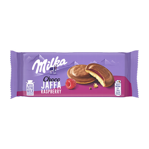 Milka Raspberry Jaffa Cakes 147g are a delicious treat that everyone can enjoy. These soft, spongy cakes are covered in a smooth chocolate shell and filled with a sweet, raspberry jelly. They are perfect for enjoying with a cup of tea or coffee as a snack or dessert. With no artificial colours or preservatives, these cakes are sure to satisfy any sweet tooth. Buy Milka Raspberry Jaffa Cakes 147g today for a treat that the whole family will love.