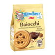 Mulino Bianco Baiocchi Nocciola 260g: Treat yourself to these crunchy and creamy biscuits with hazelnut cream filling. Made from wheat flour, sugar, hazelnuts, cocoa butter, cocoa mass, eggs and milk powder, these biscuits have a delicious taste and a moist texture. They are shaped like sandwiches with two biscuits and a heart of hazelnut cream. They come in a convenient package that opens easily and stands still. You can enjoy them as a snack, dessert or breakfast.
